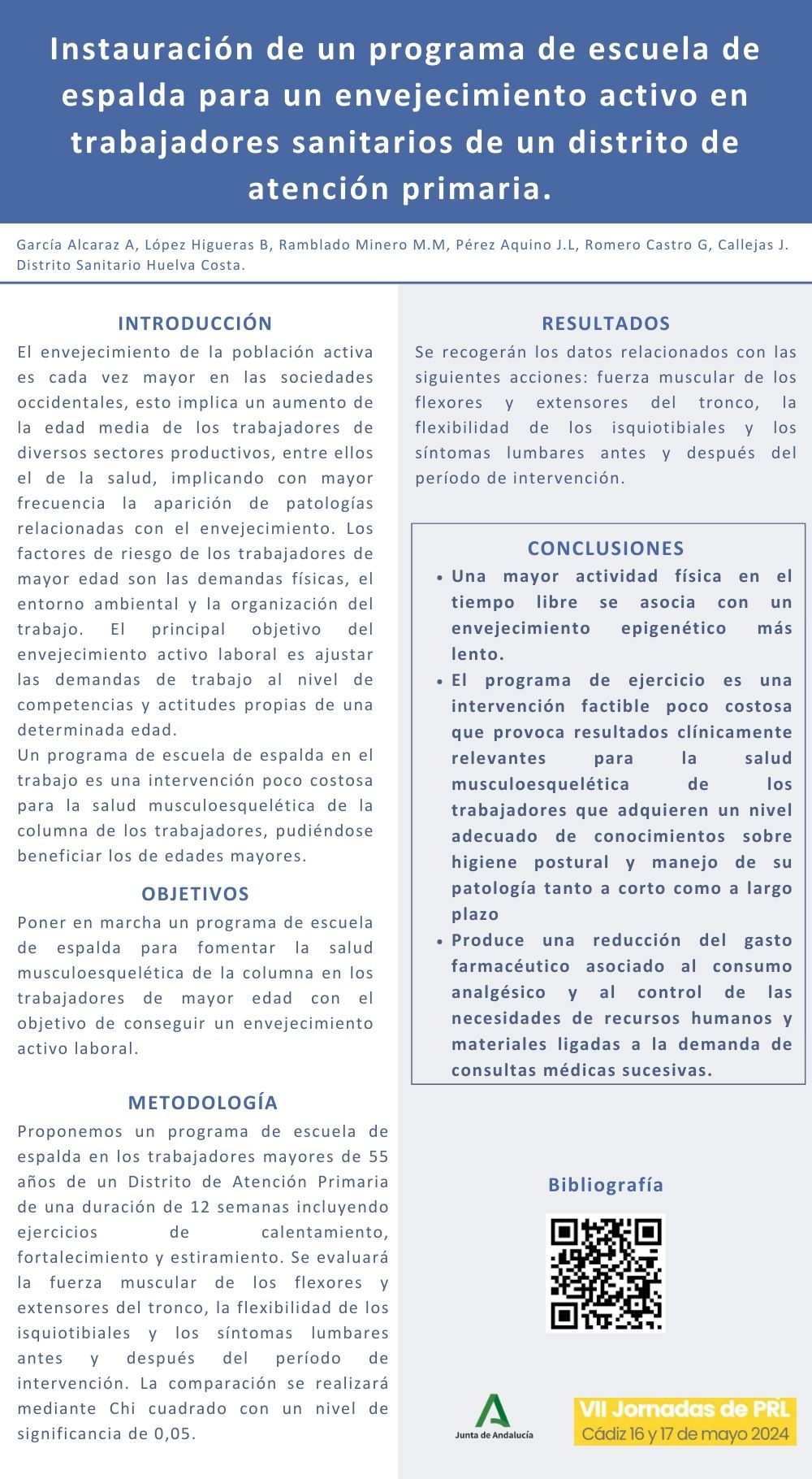 INSTAURACIÓN DE UN PROGRAMA DE ESCUELA DE ESPALDA PARA UN ENVEJECIMIENTO ACTIVO EN TRABAJADORES SANITARIOS DE UN DISTRITO DE ATENCIÓN PRIMARIA Popular